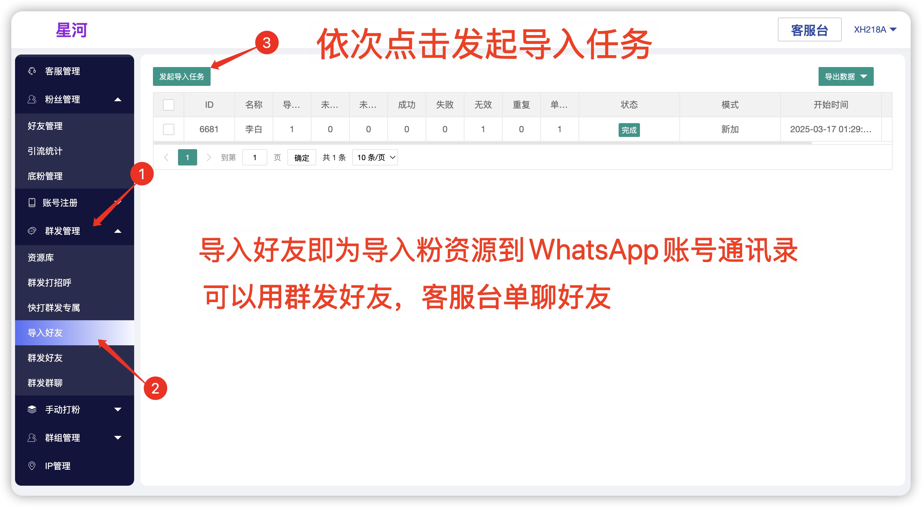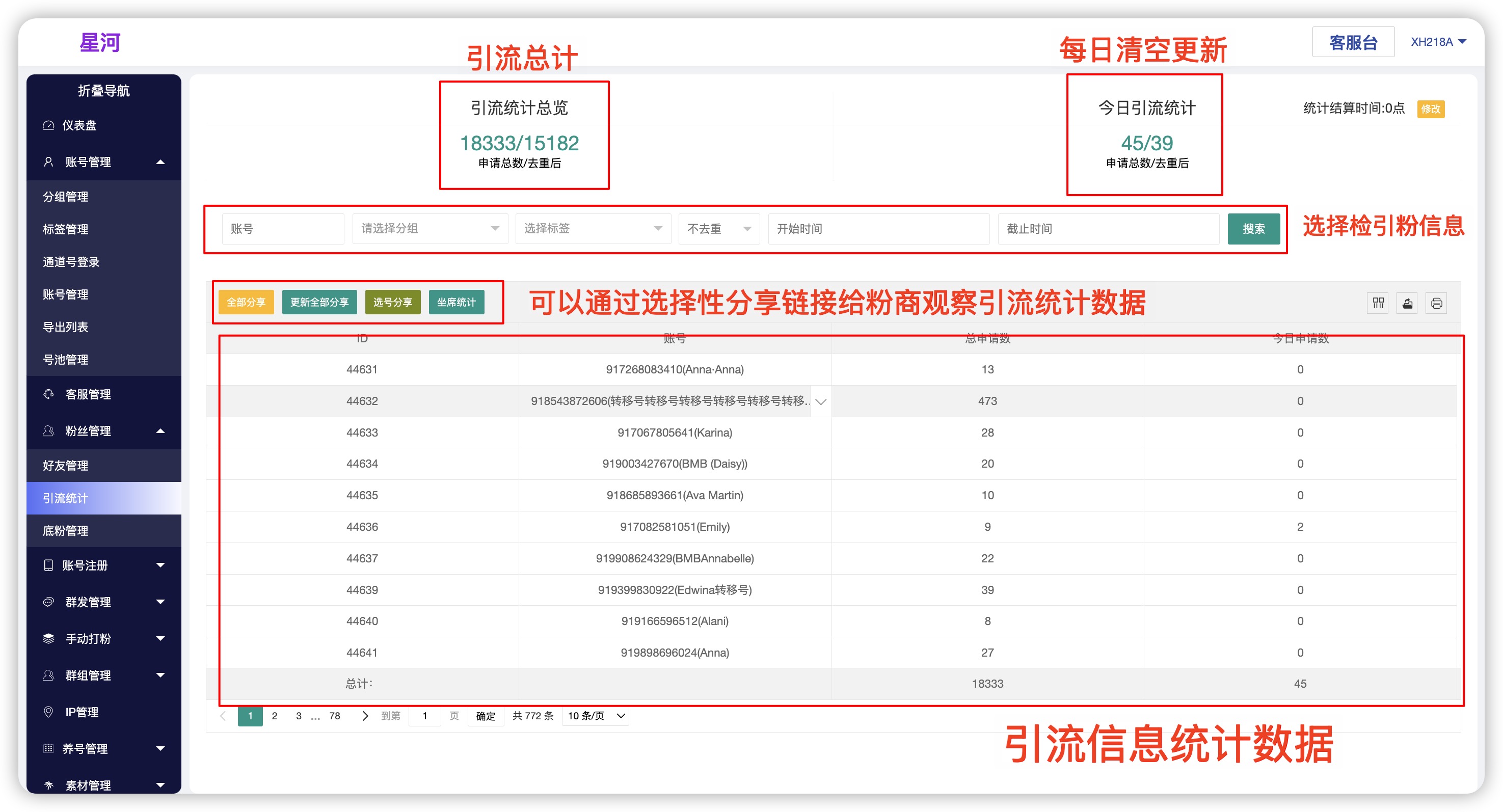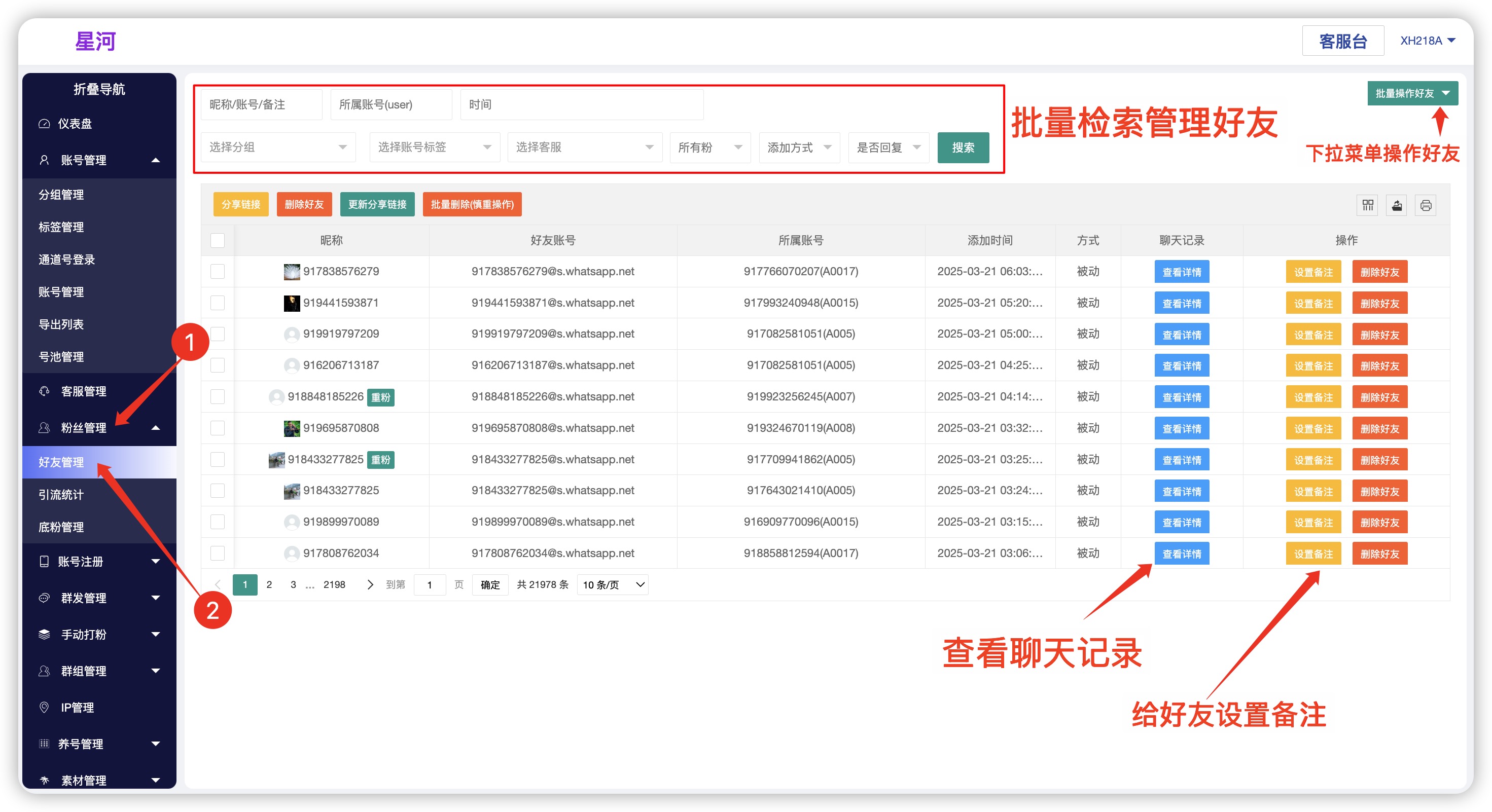 关于 星河云控 ==它是一款最新的Whatsapp真机云控系统,无需手机,真正的免设备云控,支持控上接码注册、养号、接粉、炒群、群发,可开独立后台,自带计数器,自带翻译,批量操作,数据不流失可导入导出,功能齐全,公司全程有白班客服和夜班客服竭诚为大家服务,全程指导✅